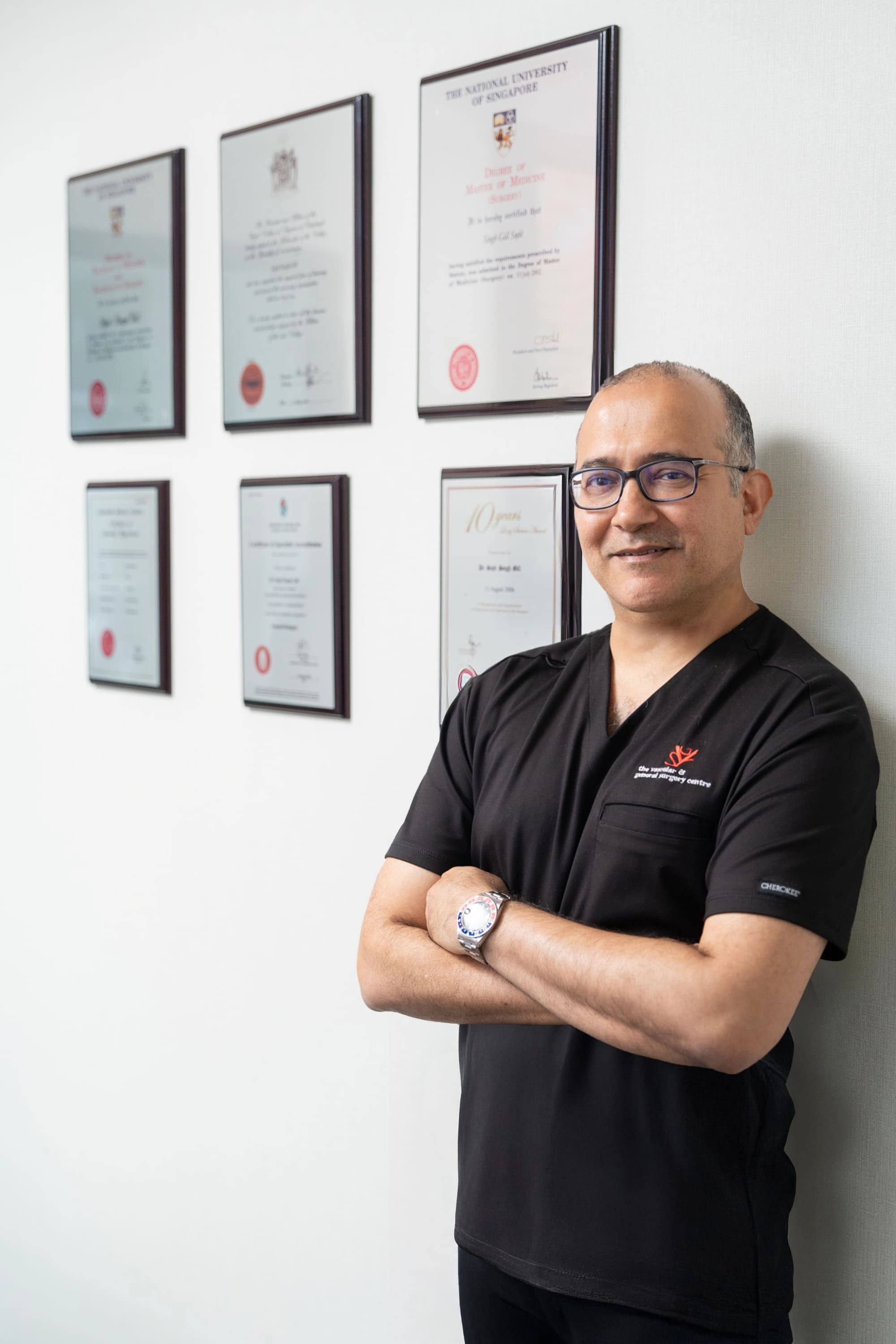 MBBS (Singapura), MMed (Singapura), FRCS (Edinburgh)